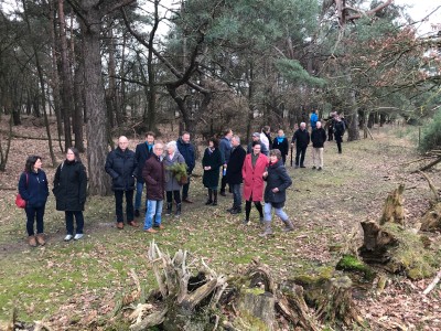 Na deze inleiding gingen we met Jaap Vlaanderen, de vrijwilligerscoordinator van het GNR, naar buiten. De Infoschuur ligt midden in een prachtig natuurgebied. We liepen over een slingerend vlinderpad, door de zanderij naar de 800 meter lange natuurbrug, die in 2006 werd geopend door destijds koningin Beatrix. Deze natuurbrug herstelde de verbroken verbinding tussen de Heuvelrug en de natuurgebieden in het westen van het Gooi.